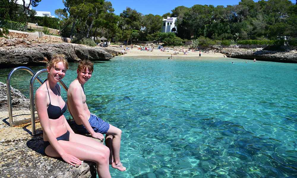 – Perfekt liten by med øyas fineste badebukt, mener det nederlandske søskenparet Margot (17) og Tom Selie (15) om Cala d´Or. Foto: Torild Moland