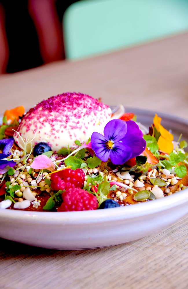 Rettene på kafeens meny ser i utgangspunktet ikke så avanserte ut: Kokosyoghurt, eggs benedict og müsli av australske korn. Men inn kommer imponerende kreasjoner, og pannekaken er fylt med det vakreste av garnityr som fargerike bær, stemorsblomster og tørket frukt. Lokalt, smakfullt og veldig Instagram-vennlig.