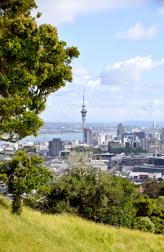 Landskapet rundt Auckland byr på øyer, vulkaner, regnskog, vingårder og bystrender. Det er hav på alle kanter, men utsikten er også urban. Bykjernen gir assosiasjoner til Toronto – ikke minst på grunn av karakteristiske Sky Tower, Aucklands svar på Torontos CN Tower.