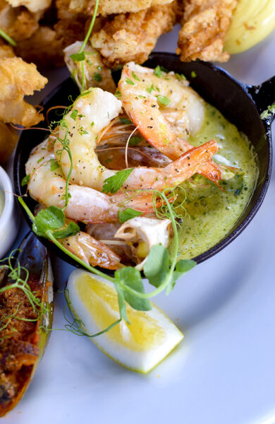 Kokkene på Marvel Grill har dandert et delikat fat med en miks av bakte grønnskjell, spicy østers, marinerte reker og røkelaks fra restaurantens eget røkeri. Vi slurper i oss østersen og tar en slurk lokal Chardonnay. Gradestokken viser 25 grader og solen står midt på himmelen. Det er vinter i Norge. Dette er storbyferie på sitt beste!