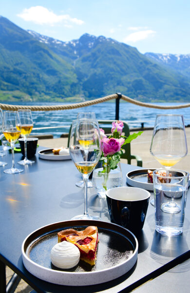 Siden har det gått i rakettfart. Den første siderruten med båt startet sommeren 2020, og i sommer går det kontinuerlig siderbåt i rute mellom Odda, Lofthus og Aga. I fjor sommer åpnet også restaurant Siderhuset Ola K på brygga, i det gamle lokalet Spar-butikken med den gamle kjøpmannsdisken fra 1912 som bar. De to historiske hotellene Utne og Ullensvang har fulle hotell og sidersmakinger hele sommeren. Hele bygda har fått et løft, og alt begynte med sider.