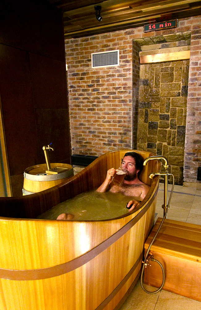 Mikrobryggeriet Purkmistr byr på spabehandlinger skreddersydd ølhunder. De lærde strides om hvorvidt øl er godt for både kropp og sjel. Men hva gjør vel det når du kan bade i varmt badevann tilsatt humle og pils – med en egen tappekran for hånden?