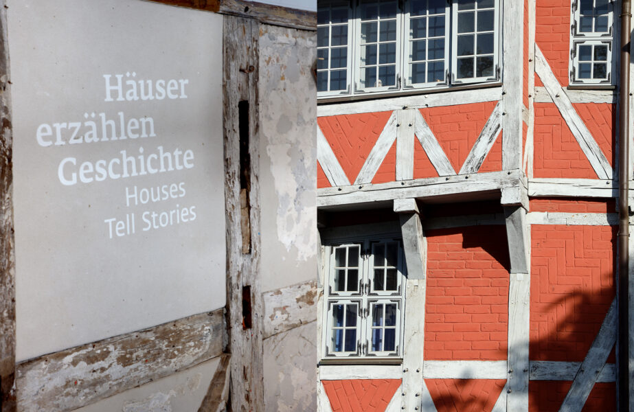 – Bygningenes funksjon er endret, men strukturen er den samme som fra byens opprinnelse. Kom, bli med – her er et godt eksempel, fortsetter André etter en kjapp matbit i farta.