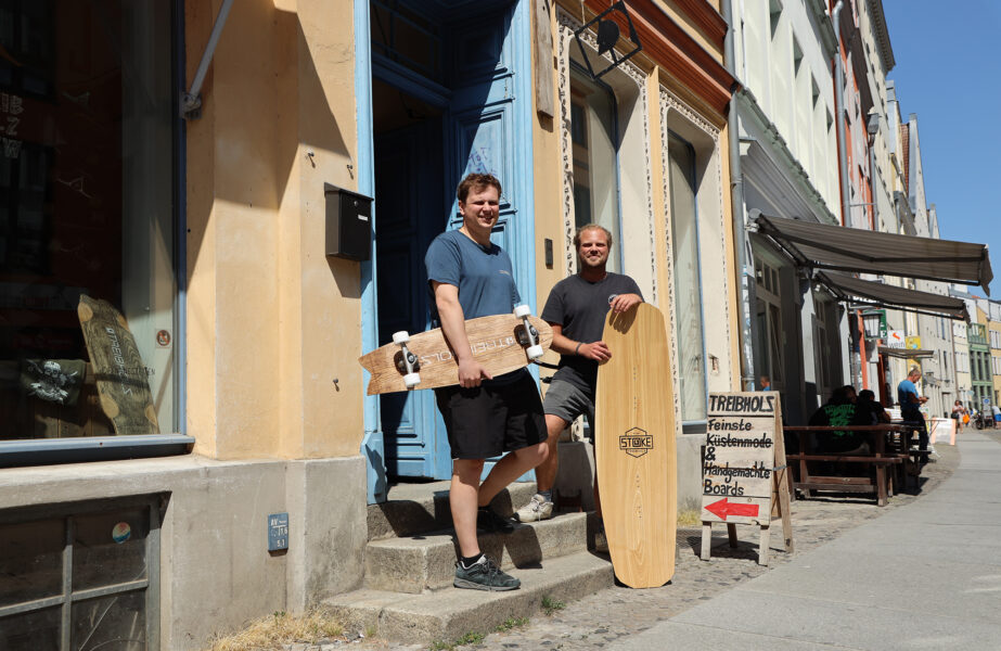 En kjeller fra middelalderen fått nytt liv som verksted for skateboard. Marius Drüding og Frank Mersmann flyttet til Stralsund for å studere økonomi og ledelse, men endte opp som gründere for en skate- og surfebutikk. De tunge bærebjelkene er synlige i veggene. Kjelleren fra middelalderen kan ha vært lager for tekstiler, eller kanskje oppbevaringssted for øl. Nå er det verksted for skateboard og strandmote. Kanskje ikke det du forventer fra en by forankret i middelalderen, men likevel en viktig del av bybildet.