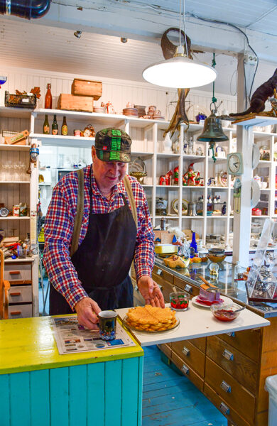 I Nord-Norge er sommeren bare en flyktig elskerinne som kommer på besøk og stryker deg over kinnet før hun haster videre. Men hun er her i dag, elskerinnen. Og kjærtegner de gamle trehusene, måkene som kakler, blomstene som klamrer seg fast til værharde knauser og taggete, frodige fjellknauser som vokter over roen. Og uteserveringen til restaurant Ekspedisjonen, det bankende hjertet i dette lille ny-samfunnet.