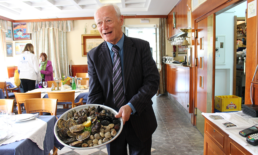Vi smaker oss gjennom svart risotto, marinerte blåskjell, blekksprut – og det som kanskje er verdens beste østers. Østersene kan bli servert på 15 forskjellige måter, men aller best er de naturell. Servert på is med sitron. Og skylt ned med lokal vin, så klart.