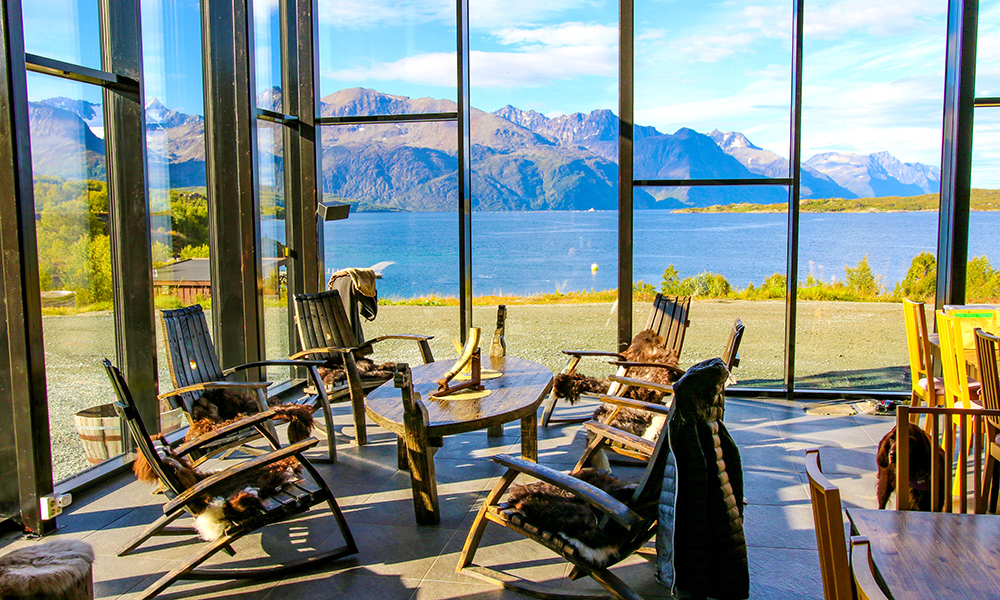 Sammen med en smak av Lyngen i glasset, gir utsikten mot regionens dramatiske natur gjennom de svære panoramavinduene en følelse av å være i ett med fjord og fjell.