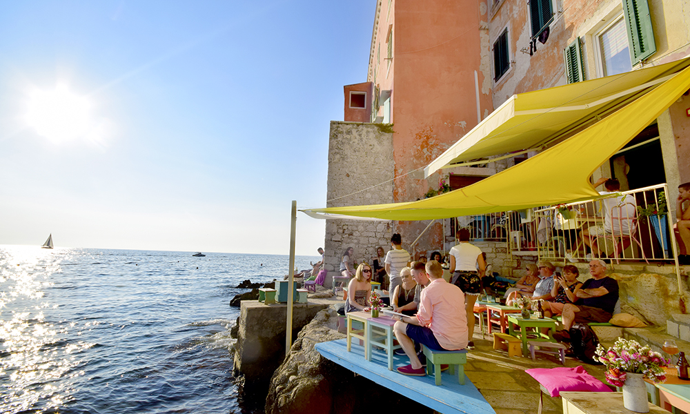 Den spennende drinkmenyen bestemmes ut ifra hvilke råvarer som er i sesong; akkurat nå er det granateple. Dette er selve essensen av den maleriske byen: På samme måte som Paris er kjent for jazzklubber og New York er kjent for takterrassebarer, er Rovinj kjent for sine klippebarer.