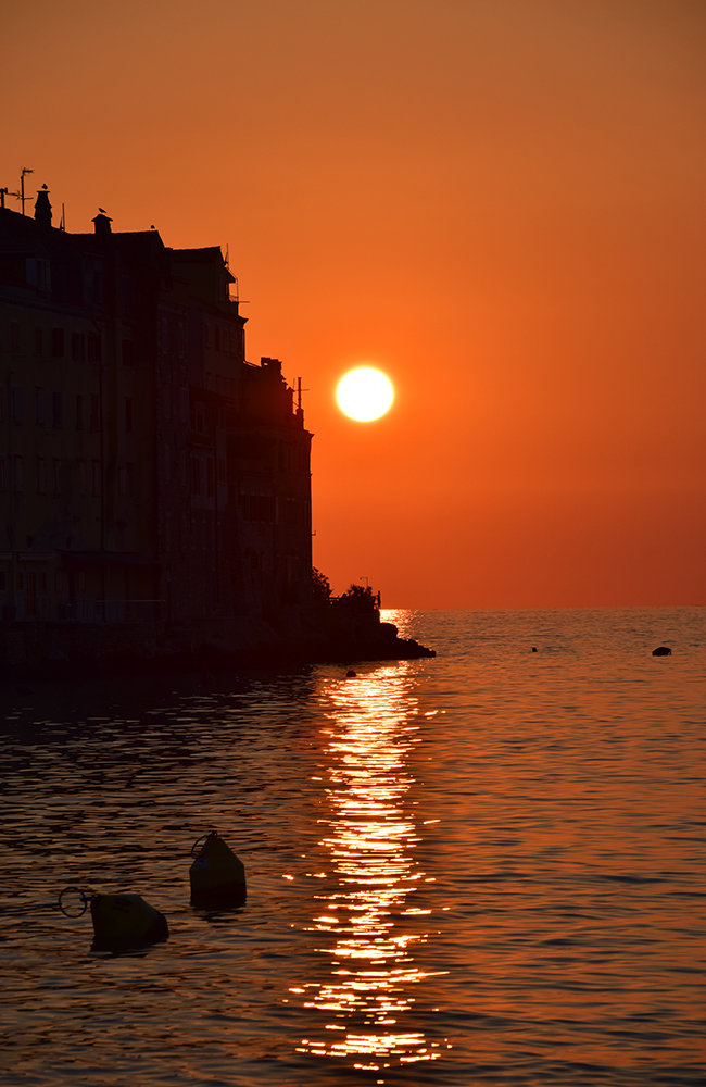 Å beskue gamlebyen fra utsiden, er som å se et malerskrin av pasteller og varme farger. I horisonten får vi øye på en lokal fisker i en liten robåt som har tatt med seg noen turister på solnedgangscruise. Skrur vi tiden 20 år tilbake hadde hensikten med toktet vært å få fisk på kroken. Da var Rovinj fortsatt en søvnig fiskerlandsby, uten stilige designhotell og gourmetrestauranter.
