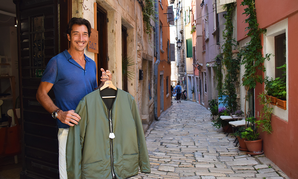 – Vi lager bærekraftig mote av gamle fiskenett og havavfall, sier Chiara Fumagalli (46) som driver SALT sammen med Luca Franchini (46) – en konseptbutikk som finnes to steder i Rovinj.