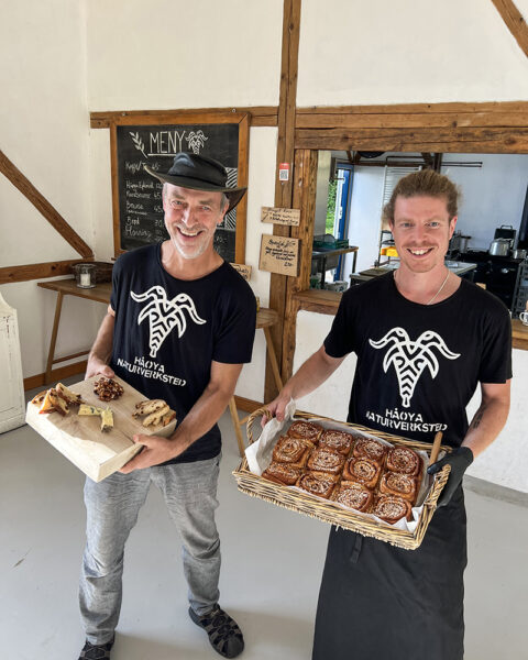 – Håøya er en øy uten strøm. Så vi har solceller, og et gassbluss for nødstilfeller. Å starte produksjon av chevre på en øy uten strøm var jo galskap egentlig, reflekterer gründeren mens han danderer nystekte kanelboller i en kurv.