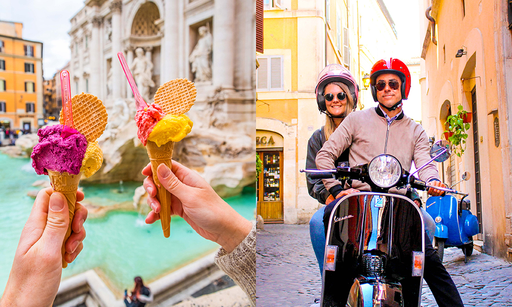 Med vinden i ansiktet og håret flagrende under hjelmen er det bare å suse forbi fontener, livlige piazzaer og gjennom trange smug på to hjul. Sightseeing på Vespa er både friere – og morsommere. Og en fin måte å komme tett på byen og til steder man mest sannsynlig ikke ville sett på en ordinær sightseeing.