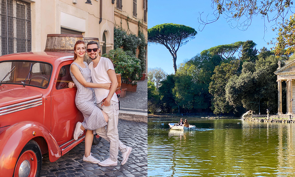 Forelskede turtelduer burde også ta turen innom Romas største park, Villa Borghese. Det flotte parkanlegget omkranser en storslått villa fra 1600-tallet. I dag huser villaen kunstmuseet Galleria Borghese. Parken er også et perfekt sted å rusle rundt eller brette ut piknikteppet og spise medbrakt lunsj. Nordvest i parken kan man også leie en robåt og padle rundt i en kunstig innsjø, omringet av antikke templer og vakre trær. For øvrig et utmerket sted for spontane frieri.