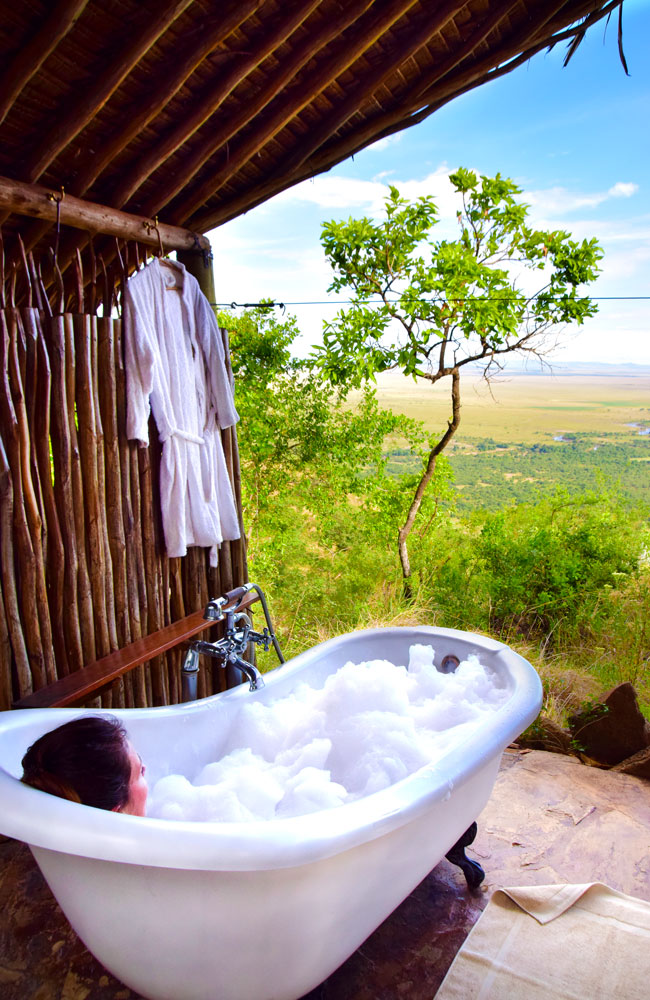 I tillegg til safari kan man på Kilima Camp også nyte utsikten over savannen fra badekaret i lodgens spaavdeling. Foto: Mari Bareksten