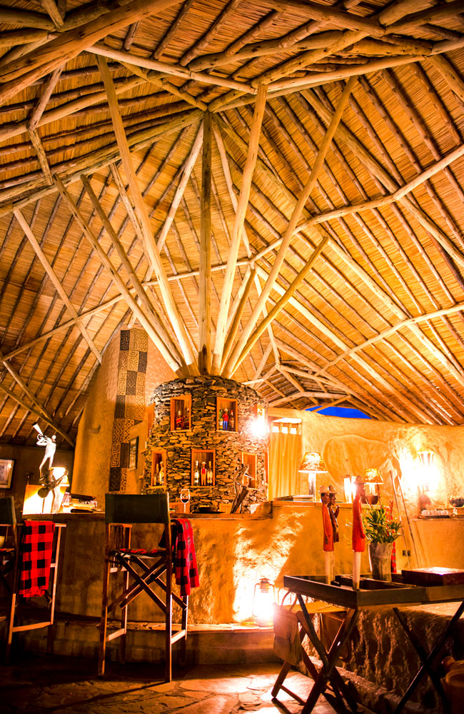 Ingen i safarifølget vårt er kjærester, så vi dropper romantisk piknik denne gang, og retter heller nesa mot lodgens restaurant. 300 meter over Masai Mara, helt på toppen av en gressbelagt ås, ligger restauranten på et panoramadekk av tre. Det arkitektoniske mesterverket er signert arkitektene Silvio Rech og Lesley Carstens, og interiørarkitekt Annemarie Meintjes.