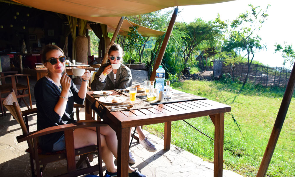 Vi er også på jakt etter mat, og det ryktes at restauranten på luksuslodgen Angama Mara har nasjonalparkens beste burgere – og den beste utsikten.