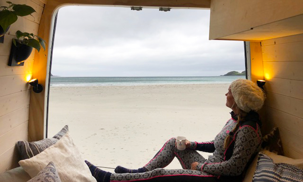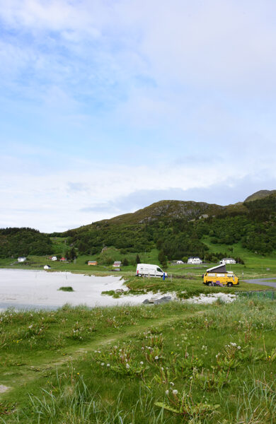 Veien går helt ned til sandkanten og eneste nabo er dusjanlegget og en gul van med likesinnede campere. Det er fordelen med å feriere utenfor høysesong.