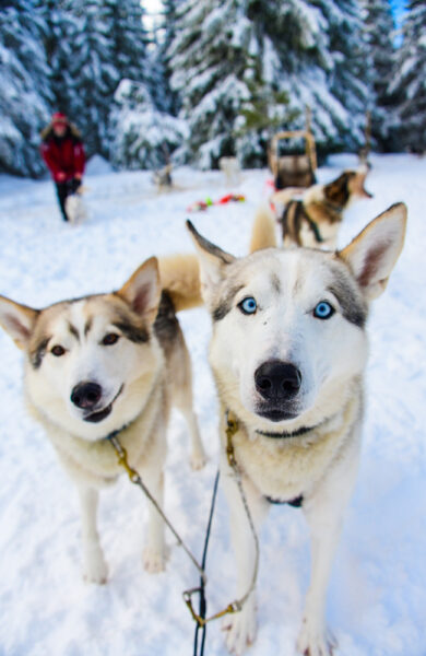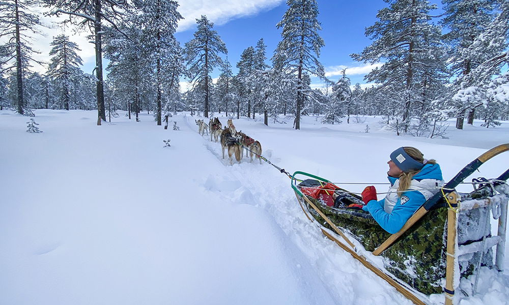 Foran spannet løper åtte ekte alaskan huskyer, sprekinger som kan løpe og løpe i timevis. Asbjørn kjenner de alle godt, og prøver å lære meg navnene på dem. Men jeg har nok med å følge med på turen og kan ikke huske om det var Odin eller Rocket som løp først. Og var det Tyra og Gjølle som kom bak?