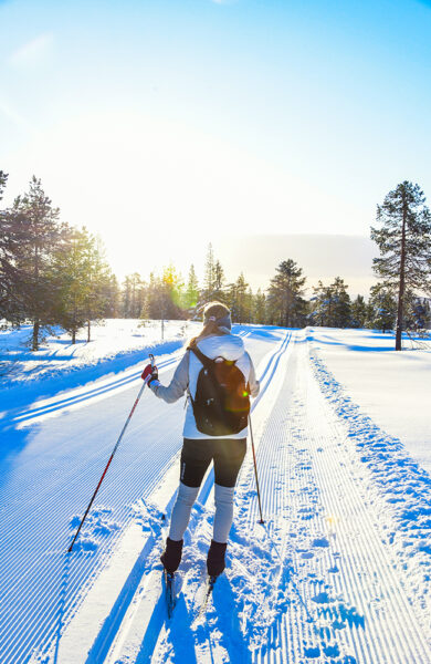 Det er hun som har spammet meg med fristende, snøfylte bilder, der hvite krystaller henger tungt på greinene og sola skinner dagen lang. Så nå har vi tatt turen for å teste.