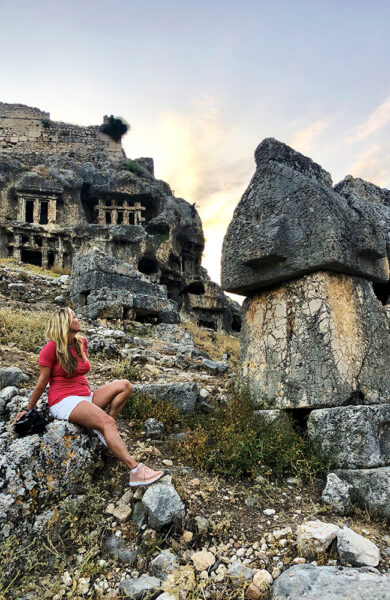 Men utenfor denne luksuriøse bobla tråkker vi rett inn i «det ekte Tyrkia» og historie som strekker seg mange tusen år tilbake i tid med gravkamre hugget inn i fjellveger, sunkne byer og romerske amfiteatre.