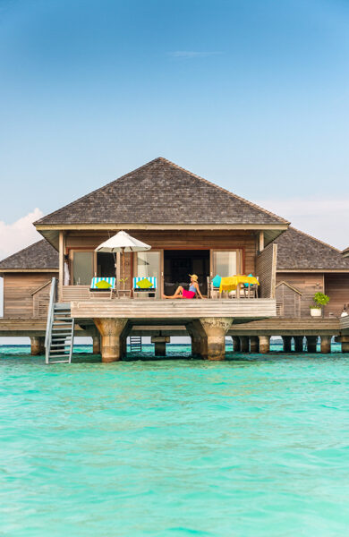 De stilige vannvillaene er luksuriøst innredet i friske turkise og grønne fargetoner, og ligger helt avskjermet ute i lagunen, med private badebrygger hvor noen få trappesteg tar deg ned til de snorklevennlige korallrevene. Mens noen av villaene har utendørs badekar og Instagramvennlige hengenett, har andre private evighetsbasseng.