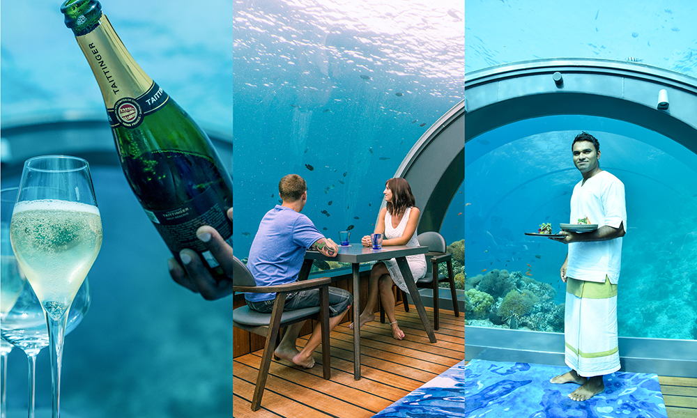 Som et omvendt akvarium er restaurant 5.8 på Hurawalhi Island Resort en fryd for sansene.