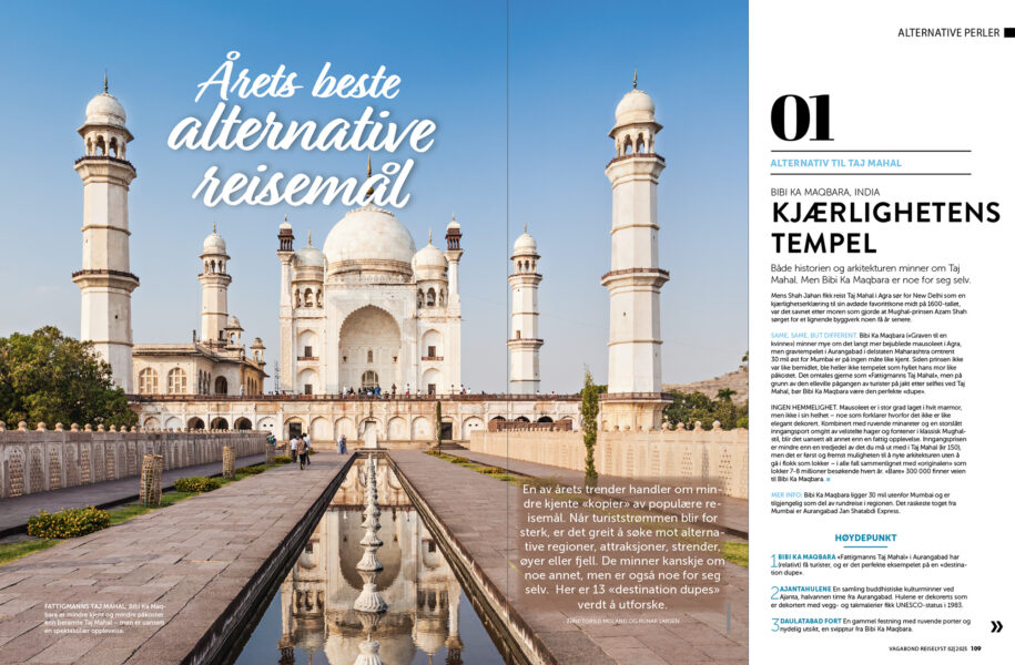 En av reisebransjens trender er såkalt «destination dupes». Dette handler kort forklart om å oppsøke steder som minner om mer kjente og populære reisemål. Vi guider deg til alternativer for blant annet Maldivene, Taj Mahal, Venezia, Machu Picchu, Botswana og Toscana – med mer!