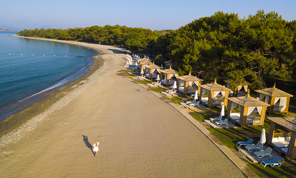 På resorten har vi all tenkelig luksus, hvite loungeputer, chillout musikk og white-party på kvelden; et lite mini-Bodrum kun for resortens gjester. Om morgenen er det yoga på «stillestranden», etterfulgt for vår del av en joggetur på ensomme stier med bratt bakkestart fra hotellet. Siden brytes badelivet av med windsurfertimer og et og annet slag med beachvolleyball. Før det igjen er tilbake til slaraffenlivet på stranda.