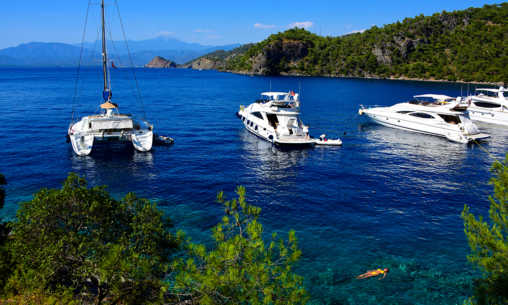 Og det er de ikke alene om – Butterfly Valley er et av høydepunktene langs kysten, berømt på grunn av den trange, gylne stranden og de dramatiske omgivelsene. Men sannheten er at den verken er unik eller alene. Hele «Tyrkias turkise kyst» – som løselig strekker seg fra Kas i syd til forbi Fethiye langs den Den lykiske halvøy – er pepret med vakre bukter med silkemyke strender, der pinjedekte fjellsider ramler ned i et batikkteppe av grønt, turkist og blått. Dette er Tyrkias svar på Maldivene. Året før korona stengte ned verden var et entusiastisk crew fra CNN travel på besøk langs Tyrkias turkise kyst, og proklamerte det raskt «den neste hotspoten ved sjøen». For anledningen har vi tatt bolig i en av dem. Hillside Beach Club ligger helt alene i den avsidesliggende Kalemyabukten utenfor byen Fethiye, innhyllet av grønne åser dekket av nåletrær. Hit kommer man ikke ved en tilfeldighet.