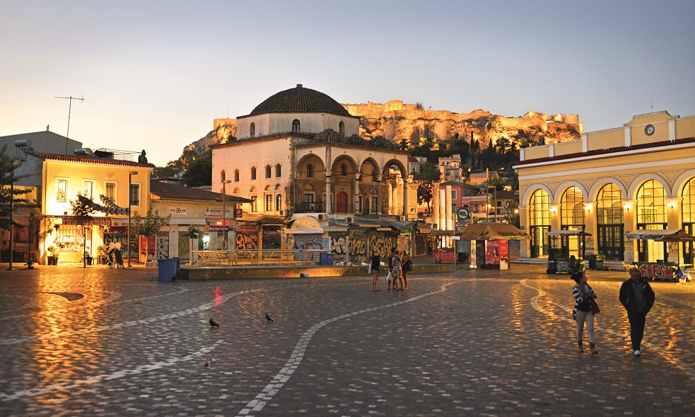 Det er ikke mange mennesker på Monastiraki-plassen klokken 06 om morgenen. Foto: Gjermund Glesnes
