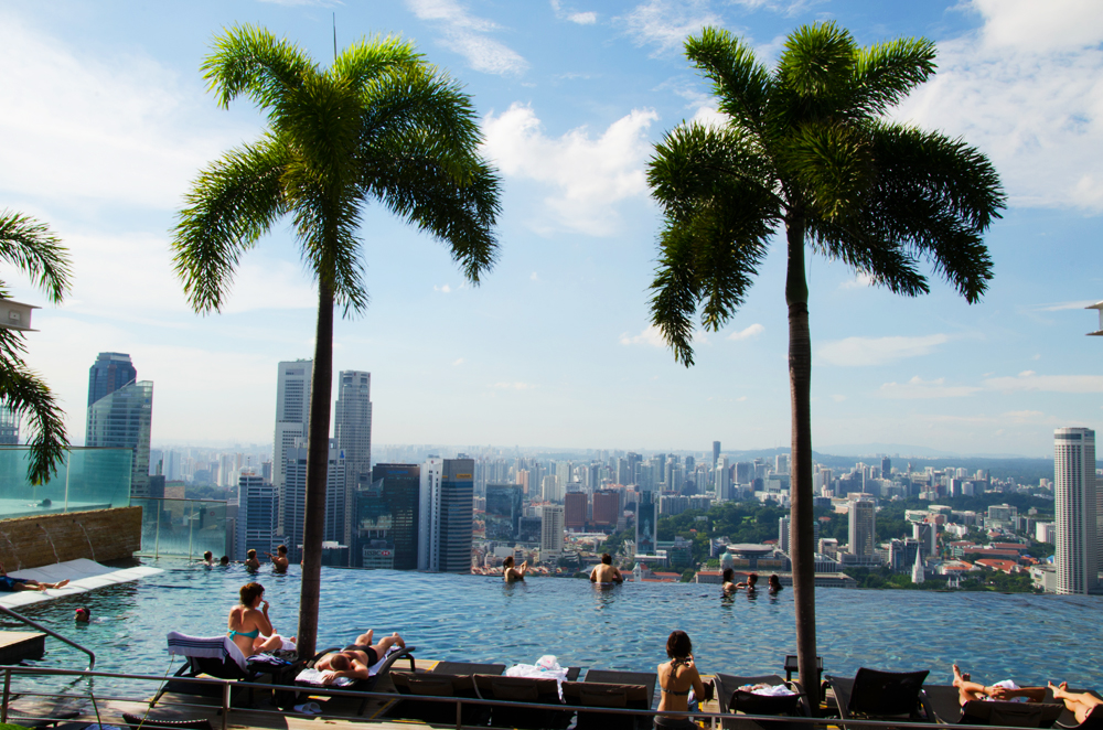 Som gjest på Marina Sands Bay kan du plaske rundt i Singapores mest berømte svømmebasseng. Foto: Mari Bareksten