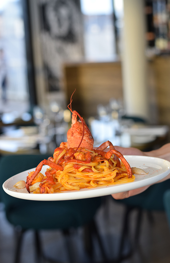 Antwerpen er også et sted for matelskeren! På restauranten RAS får du hummerpasta rett ved elven som strekker seg igjennom byen. Foto: Mari Bareksten