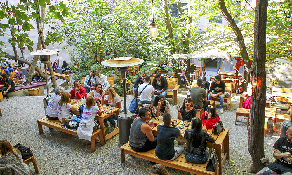 Klokka har knapt slått 12 på dagen, men i bakgården kryr det allerede av folk. Hit kommer du for å chille på dagtid, gå på konsert eller feste til langt på natt til toner av internasjonale DJ-er.
