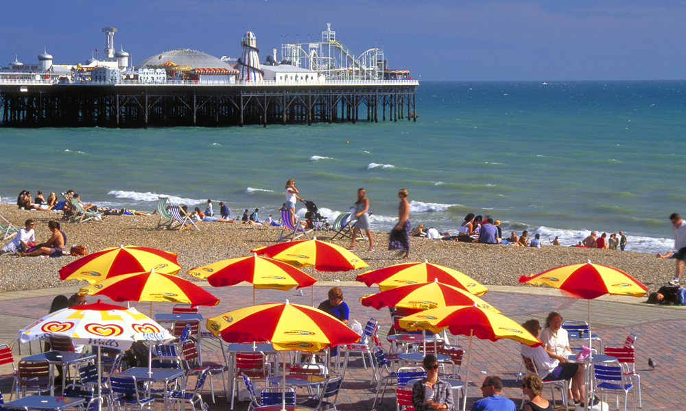 Brighton ligger bare en times tid med tog fra London. Om sommeren er dette et yndet sted for europeisk ungdom på språkreise, mens dragshow og burlesk underholdning er like vanlig som afternoon tea. Den viktorianske badebyen har gode restauranter, et sprekt uteliv og passe mange severdigheter. Brighton Pier er den mest kjente; 524 meter med romantisk smijern og morsomme karuseller, spøkelseshus og berg-og-dal-baner. Brighton sentrum har dessuten god shopping med et utall uavhengige butikker på et lite område – og er i tillegg en fin base for å smake på den nye trenddrikken English Sparkling Wine.