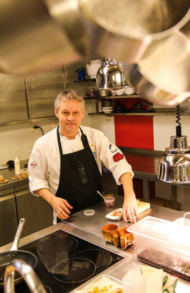 Vel tilbake på det hyggelige småbruket etter en frisk tur i hundespann venter nye utflukter, denne gangen i kokkekunstens verden. Det er lokalt og godt. Kongekrabbe med bjørkesirup, fritert svømmeblære fra torsk, smør med furubark. Lekkerbiskener fra fjord til fjell, løftet til et nivå som ville vært hyllet i enhver storby. At det er mulig her ute på landet, hvor logistikk og leveranser er en vanlig utfordring, er intet mindre enn en prestasjon.